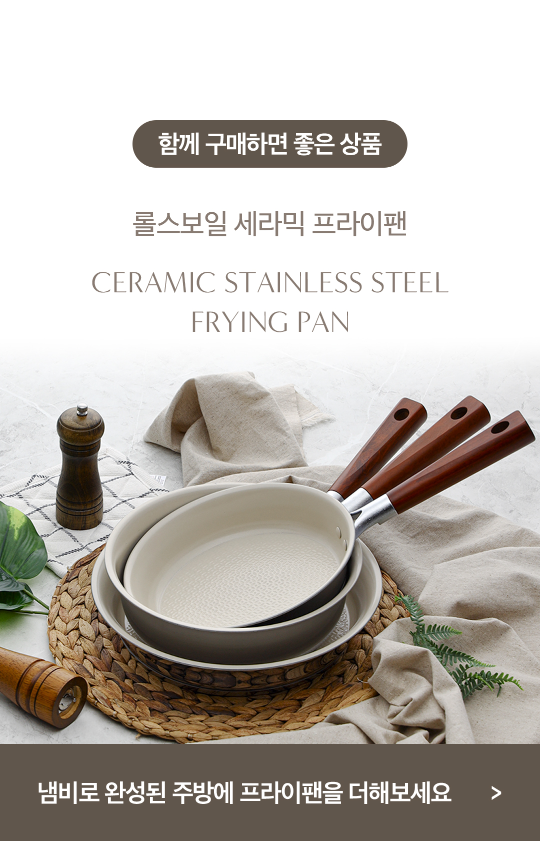 주방의 기본이 되는 필수 사이즈 조합. 통5중 스텐의 고성능을 가장 예쁘고 관리하기 쉬운 세라믹 라이프의 시작으로 만나보세요!