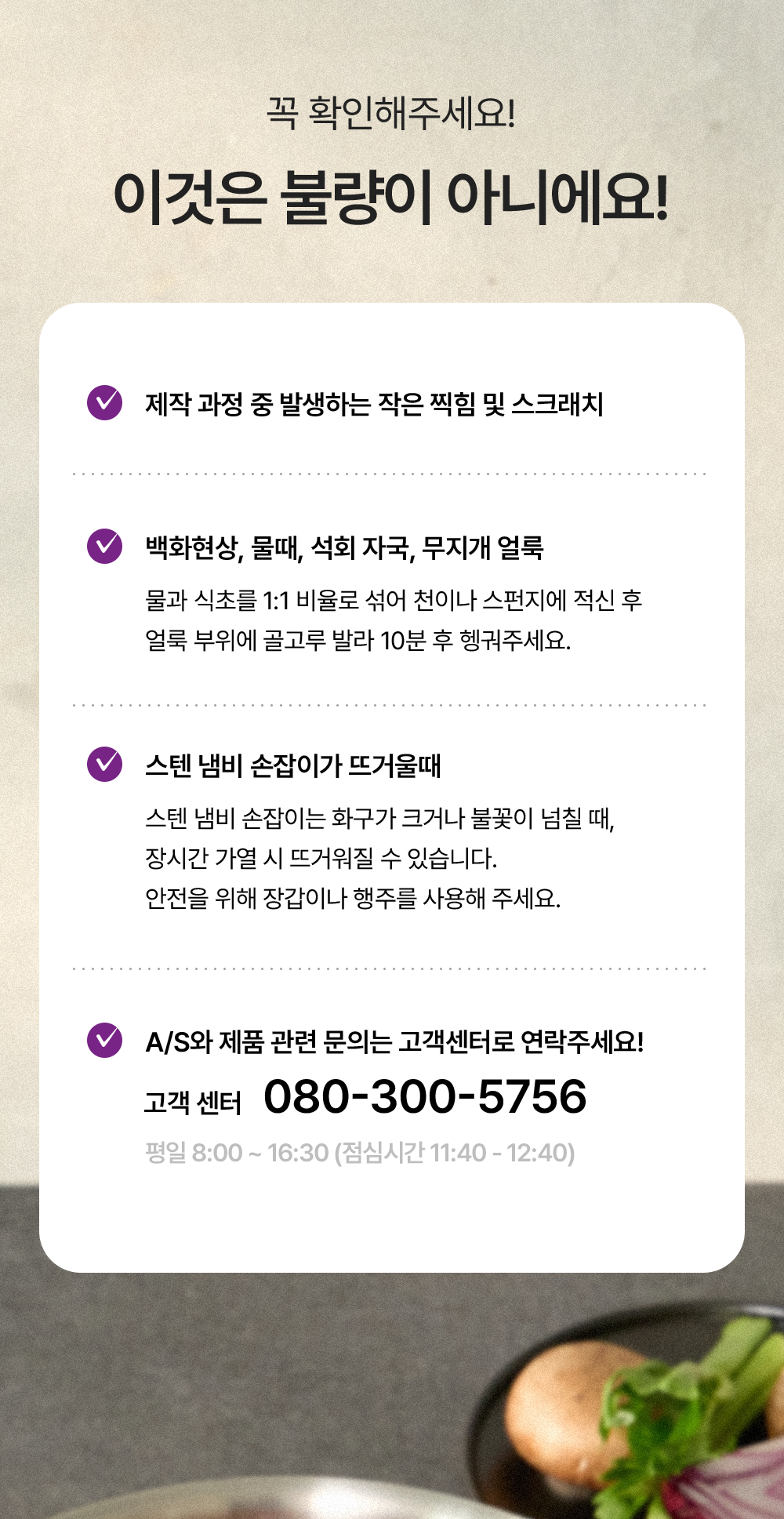 ③ 상품 사용 흔적이 있는 경우 (예: 세척, 조리 흔적, 기름/음식물 얼룩 등)